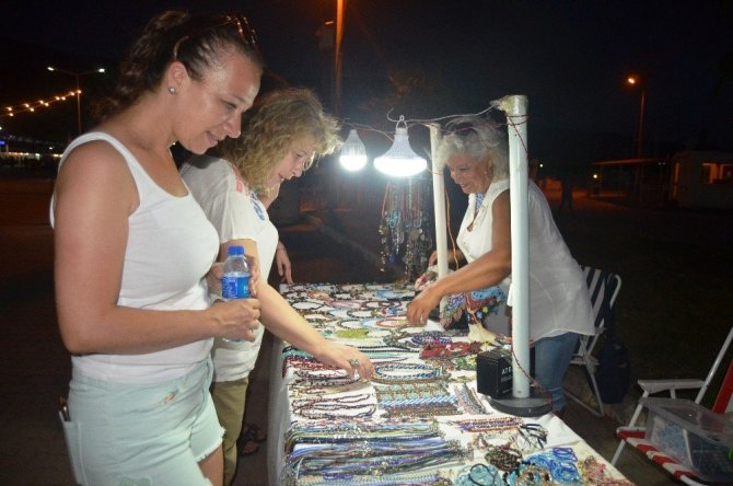 Didim’de, İlçe Milli Eğitim Müdürlüğü, Halk Eğitim Merkezi ile belediye işbirliğinde açılan kurslarda eğitim alan kursiyerlerin düzenledikleri serginin ilgi gördüğünü belirten ev hanımı Ülsen Kaya, turizm sezonu boyunca belediyenin denetiminde Altınkum’da açılan sergilerde kursiyerlerin gerek kurs aldıkları süre içerisinde gerek evde hazırlamış oldukları el işi nakış, ahşap boyama, resim, süs çantaları, boncuk işlemeler gibi el işi ürünleri sergileme imkanı buldukları söyledi. Kaya, çoğunluğun ev hanımı olan kursiyerlerin satışlardan elde ettikleri para ile mutfak masraflarını çıkarma imkanı bulduklarını belirtti.