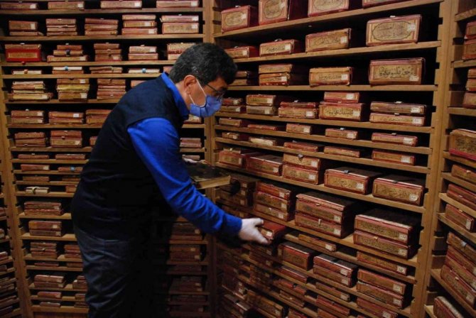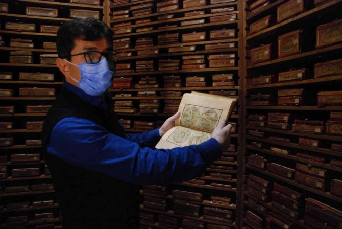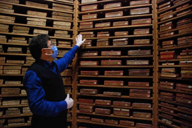 5 bin 186 eserden yaklaşık 2 bin 200'ünün yazma eser olduğunu ifade eden Kılıç, "Kütüphanemiz tıp, biyoloji, felsefe, fizik, kimya, matematik, tarih, coğrafya, sosyoloji ile ilgili kitaplara ev sahipliği yaparken, edebi eserler ve din bilimleri ile ilgili kitaplar da burada mevcut. Bu kütüphaneyi müze gibi düşünüyoruz. Ziyaretçiler kitaplara dokunamıyor ancak eğer arzu ederlerse biz onlara örnek bazı kitapları gösteriyoruz. Biz de kitaplara eldivensiz dokunmuyoruz. Kütüphanemizde iklimlendirme cihazı 7 gün 24 saat çalışıyor. Alanın sıcaklığını 18 derecede sabit tutuyoruz. Nem oranı yüzde 60'ı geçmiyor. Dışarıdan gelen kitapları fiziksel temizlik yapıldıktan sonra azot sterilizasyon cihazına koyuyoruz, daha sonra içeriye alıyoruz" diye konuştu.