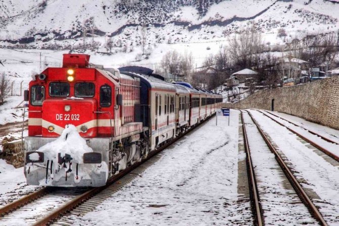 Elazığ-Tatvan arası sefer yapan Van Gölü Ekspresi, kış aylarında muhteşem manzaralar eşliğinde yolculuk imkanı sunuyor.