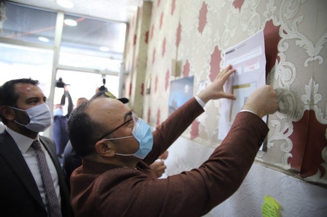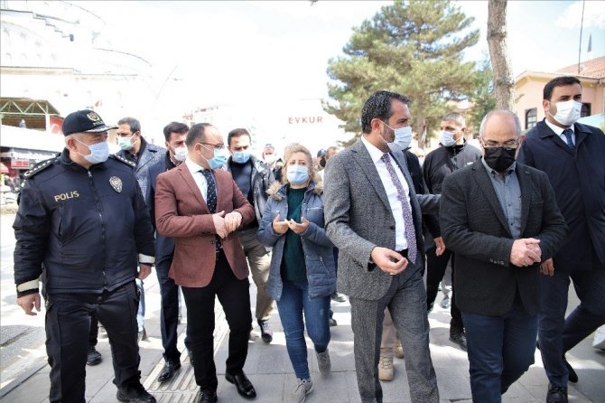 Covid-19 denetimlerine katılan Elazığ Valisi Erkaya Yırık, 3-4 gündür vaka sayılarında tedrici artışın olduğuna dikkat çekerek vatandaşları maske, hijyen ve mesafe konusunda uyardı, iş yerlerine de uyarı afişlerini astı.