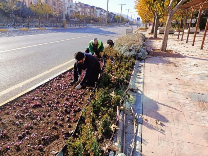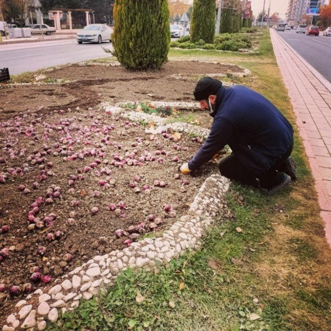 Elazığ Belediyesi Park ve Bahçeler Müdürlüğü ekipleri kent genelinde 100 bin adet lale ile 7 bin 500 adet sümbül soğanını toprakla buluşturdu.