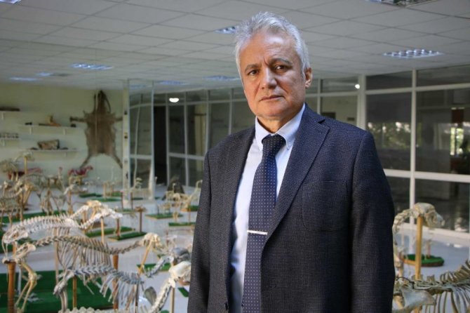 Müze ve fosiller hakkında bilgi veren Veteriner Fakültesi Anatomi Ana Bilim Dalı Başkanı Prof. Dr. Sadık Yılmaz, "Burada 50'nin üzerinde evcil ve yaban hayvanlarının çeşitli anatomik oluşumları var. Çoğunlukla iskeletler, dolgular ve plastinatlar gibi bir çok anatomik oluşumlar var. Müzemiz yaklaşık 40 yıldır var ve gittikçe de gelişim kaydetti. Zürafa iskeleti, müzeye sığmıyor şu anda girişte. 5 buçuk metre uzunluğunda bir zürafa iskeletimiz var. Türkiye'de, zürafa iskeleti zannımca bir tek bizde var. Ayrıca anatomiye zenginlik katmakta. Fosiller, buradan coğrafyadan bir hocamız Adıyaman Kahta Çayının etrafında bulunan bir hayvan mezarlığı bulmuşlardı. O çalışan ekibin yaş tayinine göre 8 milyon yıllık olduğu söylendi. Birkaç kemik örneği de biz de sergileniyor" dedi.