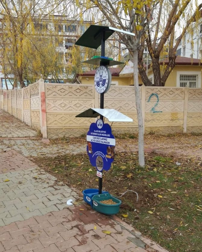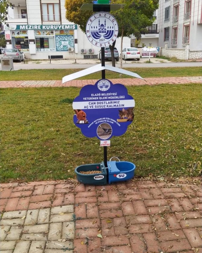 Elazığ Belediyesi, mahallelerde bulunan 90 parka su ve mama kapları yerleştirdi.