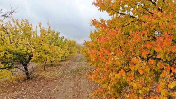 Türkiye'de aroması ve kalitesiyle ilk sıralarda yer alan Elazığ'ın Baskil ilçesinde bulunan kayısı ağaçları, sonbaharın renkleriyle ayrı bir güzelliğe büründü.