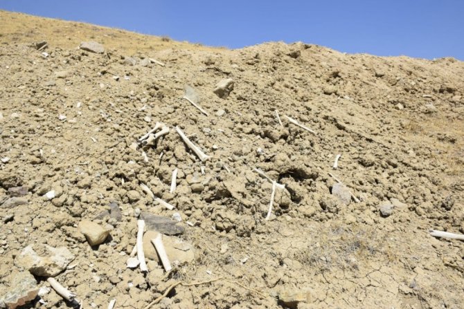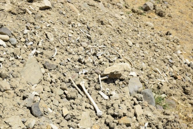 Elazığ’da içme suyu yolu mezarlık içinden geçince, kemikler etrafa saçıldı