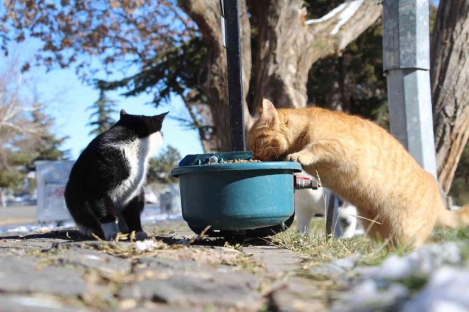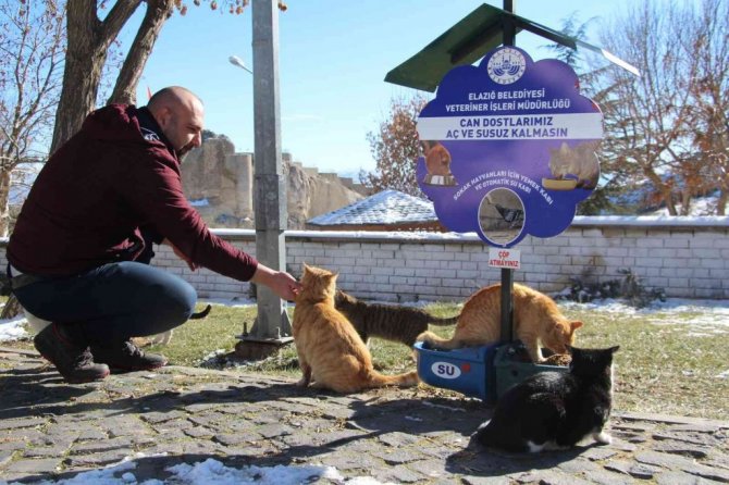 Elazığ Belediyesince sokak ve yaban hayvanları için kent genelinde 90 farklı noktaya yem, mama ve ekmek bırakıldı.