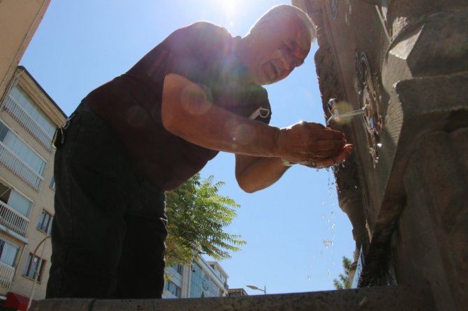 Termometrelerin 40 dereceyi gösterdiği Elazığ'da sıcak havalardan bunalan vatandaşlar çeşmeler ve gölgelik yerlere sığınarak serinlemeye çalıştı.