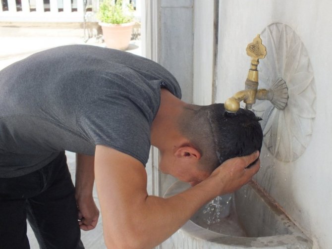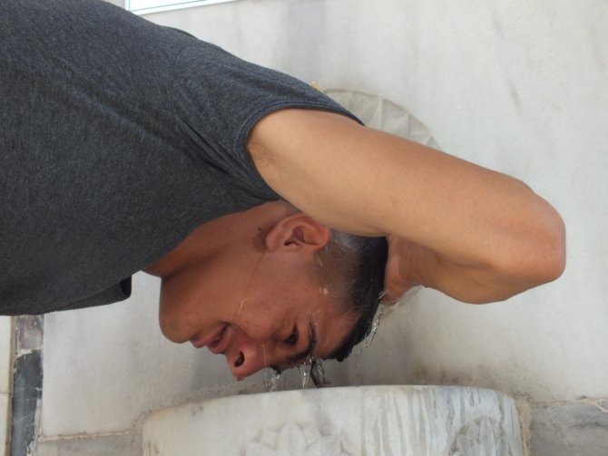 Termometrelerin 47 dereceyi gösterdiği Elazığ'da vatandaşlar serin yerlere akın ederken, bazı vatandaşlar ise soluğu şadırvanlar da aldı.