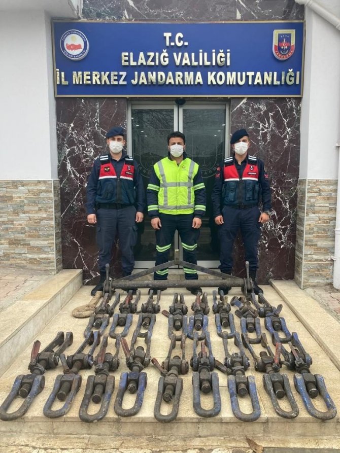 Elazığ'da tren vagonlarından 19 adet bağlantı kancasını çalan 2 şüpheli, jandarma tarafından yakalanarak gözaltına alındı.