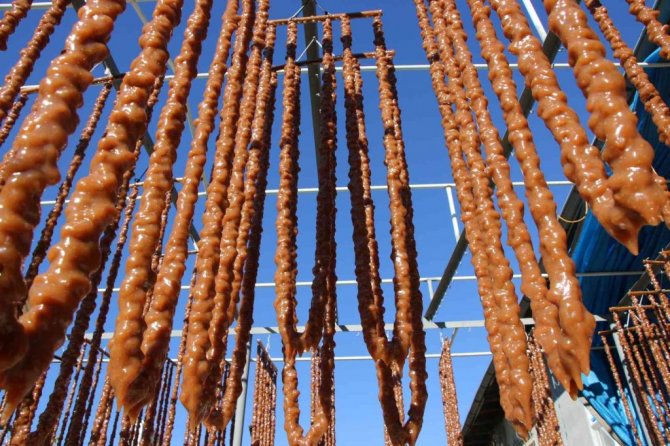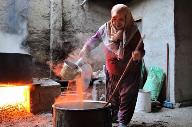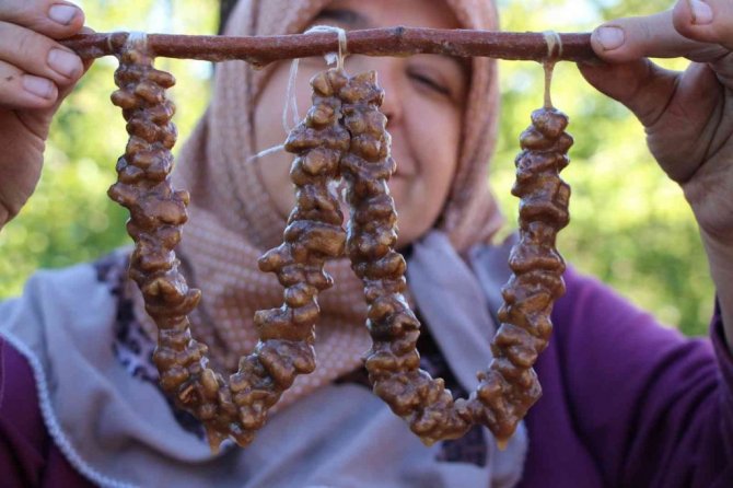 Elazığ'da Coğrafi İşaret Tescili alan, üzüm ve cevizle hazırlanan "orcik" yapımına başlandı.
