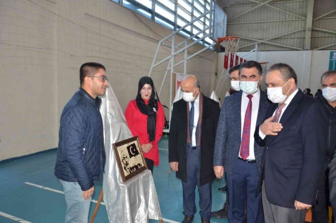 Müzik dinletisinin ardından serginin açılış kurdelesi kesildi. Elbistan Kaymakamı Özkan Demir, Cumhuriyet Başsavcısı Hayri Ormancı ve protokol üyeleri, sergideki eser ve ürünleri tek tek inceleyerek bilgi aldı.