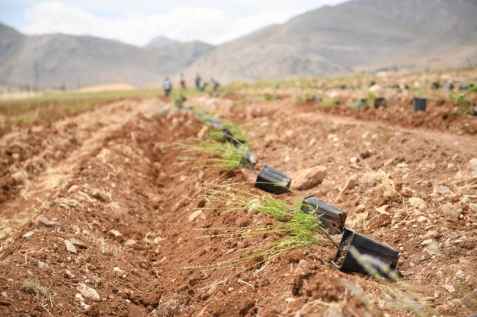 Elbistan’da lavanta vadisinde 3.etap fide dikimi başlandı
