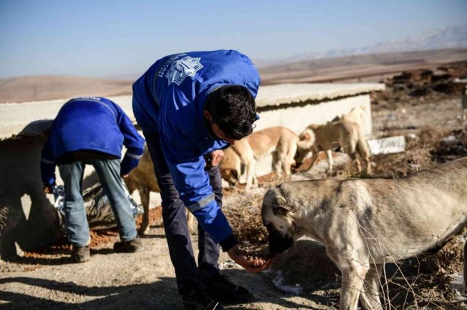 Kahramanmaraş'ın Elbistan ilçesinde belediye personelleri tarafından havaların soğuması ile birlikte yiyecek bulmakta zorluk çeken sokak hayvanları için,...