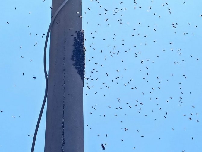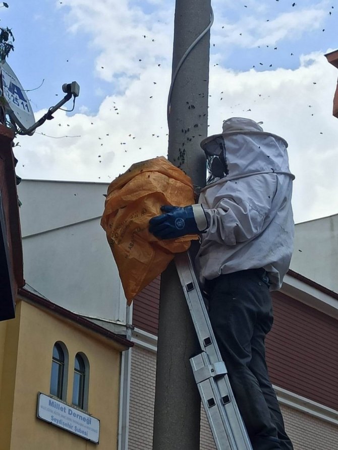 Edinilen bilgiye göre, Seydişehir ilçesinin en işlek caddelerinden biri olan Hürriyet Caddesinde bulunan elektrik direğine oğul veren arıların olduğunu gören vatandaşlar durumu zabıtaya bildirdi. Yüzlerce arının bulunduğu elektrik direğine oğul veren arıları gören vatandaşlar şaşkınlıklarını gizleyemezken, o anları cep telefonlarıyla görüntüledi. Zabıta ekiplerinin çağırmasıyla olay yerine gelen arıcı Tarık Özyiğit, özel kıyafetini giyerek merdiven yardımıyla elektrik direğine tırmandı. Yanında getirdiği çuval içerisindeki kovanlara arıları toplayan Tarık Özyiğit, arıları kendi kovanlarına götürdü. Arıların toplanmasıyla vatandaşlar rahat bir nefes aldı.