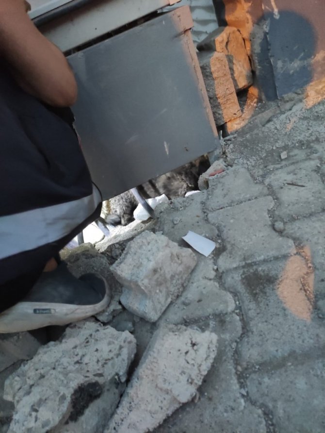 Van'ın Edremit ilçesinde elektrik panosunun altındaki boşlukta sıkışan yavru köpek, itfaiye ekiplerinin uzun süren çalışmaları sonucu kurtarıldı.