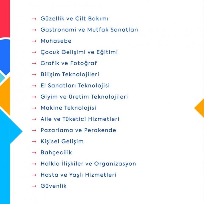 EMEK (Esenler Meslek Edindirme Kursları)'te güzellik ve cilt bakımı, gastronomi ve mutfak sanatları, muhasebe, çocuk gelişimi ve eğitimi, grafik ve fotoğraf, bilişim teknolojileri, el sanatları teknolojisi, giyim ve üretim teknolojileri, makine teknolojisi, aile ve tüketici hizmetleri, pazarlama ve perakende, kişisel gelişim, bahçecilik, halkla ilişkiler ve organizasyon, hasta ve yaşlı hizmetleri ile güvenlik alanlarında toplam 72 branşta eğitim verilecek.