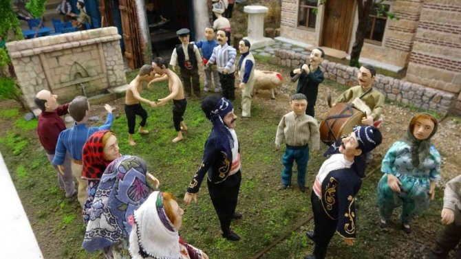 Türk örf ve adetlerini diorama sanatına yansıttığını ifade eden Kocaoğlu, "Son yaptığımız projeyi Antalya'da bir belde için yaptık. Folklorik kültürel yaşantımızı aks eden bir diorama çalışması oldu. Köyde aile yaşantıları, kültürel düğünlerimiz ve güreşlerimiz, yani bizi yansıtan ne varsa dioramamızı uyguladık" dedi.
