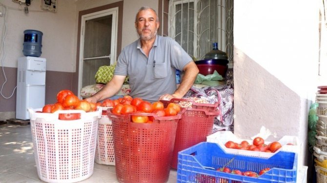 Manisa’nın Sarıgöl ilçesinde İlçe Sağlık Müdürlüğünden emekli olan Yüksel Aktaş tarafından kurulan bahçede vatandaşlar istedikleri ürünleri dalından koparıp alabiliyor.