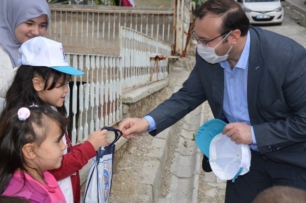 Emet Belediyesi ilçede bulunan tüm çocuklar için şeker ve çukulata paketleri hazırlayıp 2020 heyman anısına bastırdığı şapkaları dağıttı.