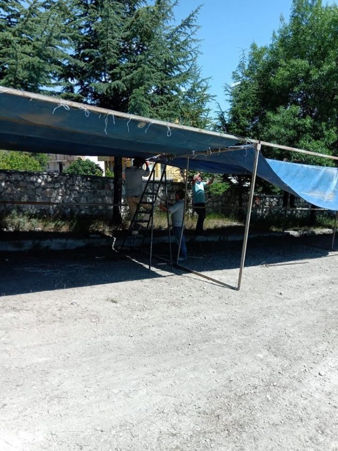 Kütahya’nın Emet ilçesinde, Kurban Bayramı öncesi hayvan pazarı, yıkılan Cevizdere İlkokulu bahçesinde hizmete girdi.