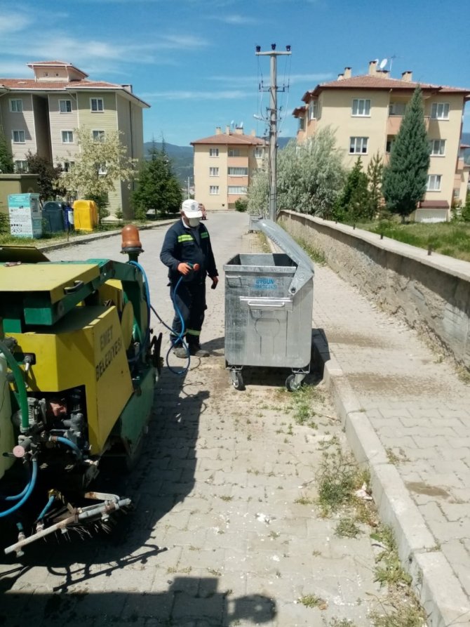 Emet’te çöp konteynerleri yıkanıp dezenfekte ediliyor