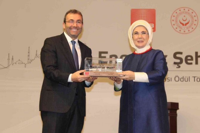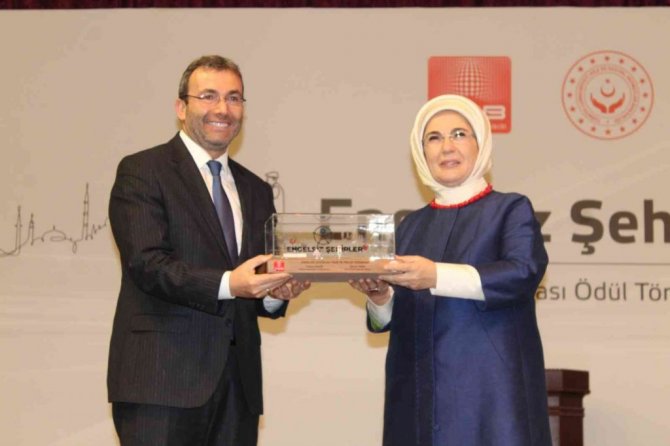 Pendik Belediye Başkanı Ahmet Cin ile ödül alan diğer belediye başkanları, ödülünü Emine Erdoğan'ın elinden aldı.