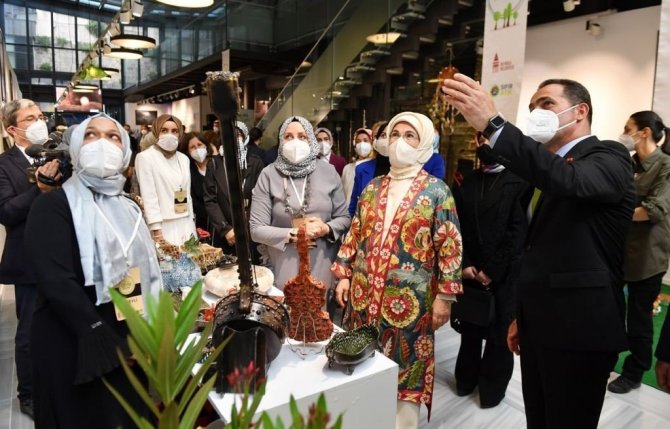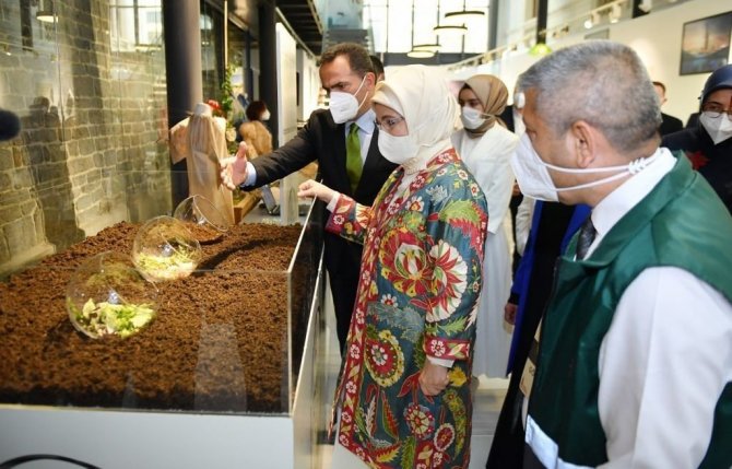 Etkinlikte ayrıca, kaynağında ayrı toplanan atık camların kırılıp işlemden geçirilerek yeni ürünlerin üretildiği atölye çalışması gerçekleştirildi. Emine Erdoğan da tarihi belediye binasının balkondan yapılan atölye çalışmalarını izledi.