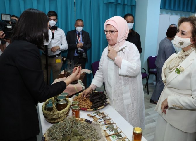 Cumhurbaşkanı Recep Tayyip Erdoğan'ın resmî ziyaretine eşlik etmek üzere KKTC'de bulunan Emine Erdoğan'a Girne Belediyesi Sosyal Yaşam Merkezi'nde geleneksel Kıbrıs el sanatları ve motifleri ile Kıbrıs'a özgü bitkilerin sunumu yapıldı.