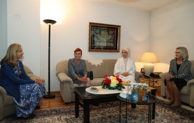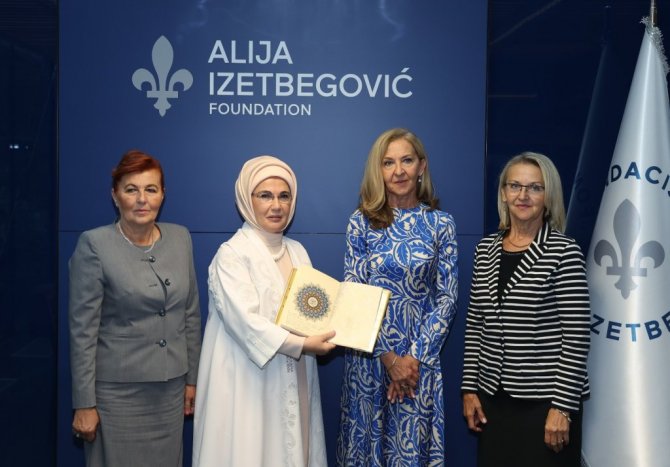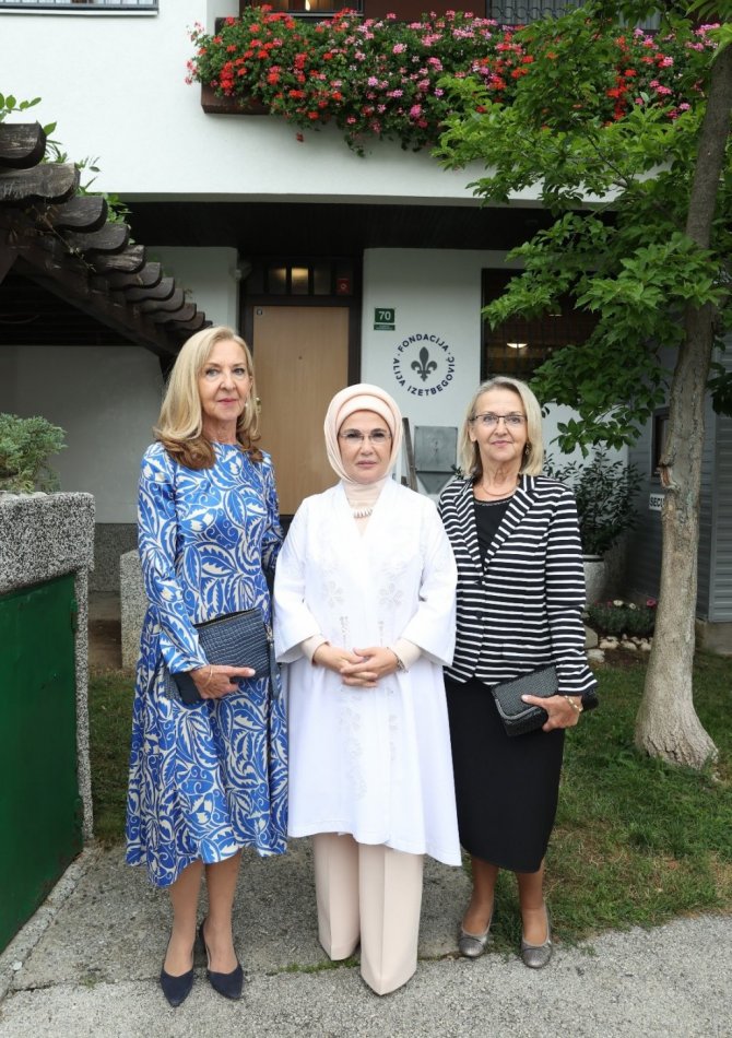 Bosna Hersek'in başkenti Saraybosna'da bulunan Cumhurbaşkanı Erdoğan'a eşlik eden Emine Erdoğan, Aliya İzzetbegoviç Vakfı'na ziyaret gerçekleştirdi. Emine Erdoğan, vakıf merkezine gelişinde Bosna Hersek'in ilk Cumhurbaşkanı Aliya İzzetbegoviç'in kızları Sabina İzzetbegoviç ve Leyla Aksamiya-İzzetbegoviç tarafından karşılandı. Merhum İzzetbegoviç'in yaşadığı ve "anı evi" olarak sergilenen bölümü gezen Emine Erdoğan, İzzetbegoviç'in kızlarıyla sohbet ederek vakıf çalışmaları hakkında bilgi aldı. Emine Erdoğan'a ziyaretinde Bosna Hersek Devlet Başkanlığı Konseyi Üyesi Şefik Caferoviç'in eşi Vildana Caferoviç de eşlik etti.