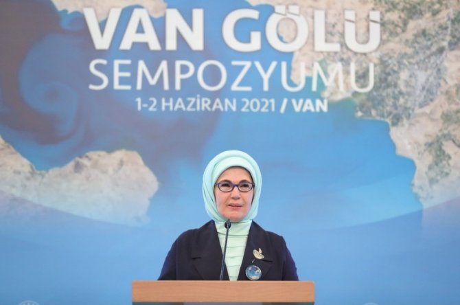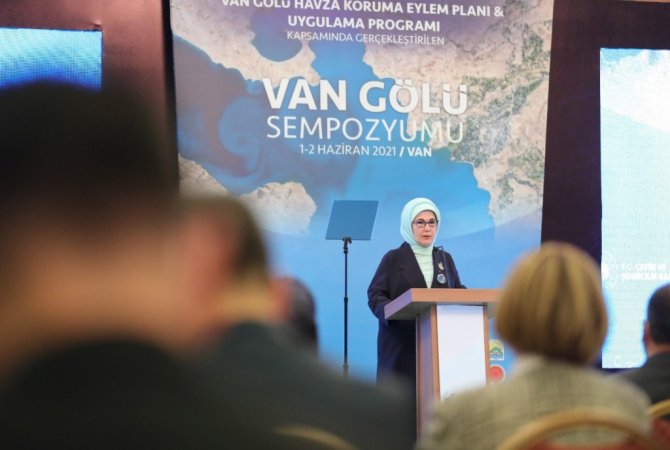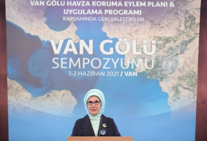 Cumhurbaşkanı Recep Tayyip Erdoğan'ın eşi Emine Erdoğan, Van Büyükşehir Belediyesi, Van Yüzüncü Yıl Üniversitesi, Edremit Belediyesi ve Doğu Anadolu Kalkılma Ajansı tarafından Van Gölü Havza Koruma Eylem Planı ve Uygulama Programı kapsamında DoubleTree by Hilton Hotel Van'da düzenlenen "Van Gölü Sempozyumu'na onur konuğu olarak katıldı. Burada bir konuşma yapan Emine Erdoğan, kökleri milattan önceye uzanan Van'da bulunmaktan büyük memnuniyet duyduğunu belirterek, "Van'a gelmek, bir hazine sandığının kapağını açmak gibi. Tarih arayana tarih, kültür arayana kültür sunuyor. Gastronomi meraklısına lezzet, doğaya hasret kalana ise taze nefes veriyor. Hoşap Kalesi, Meher Kapı, Peri Bacaları, Muradiye Şelalesi gibi harikalar saymakla bitmez. Van, birlikte yaşama kültürünün engin tecrübesine sahiptir. Şehri çevreleyen kaleler, camiler, havralar ve kiliseler bunun göstergesidir. Bugün de, çevre dostlarıyla Van Gölü için buradayız. Bizi bir araya getiren şey, tabiata olan sevdamızdır. İnşallah hayırlara vesile olmasını diliyorum. Bu programın hazırlanmasında emeği geçen herkese teşekkür ediyorum" dedi.