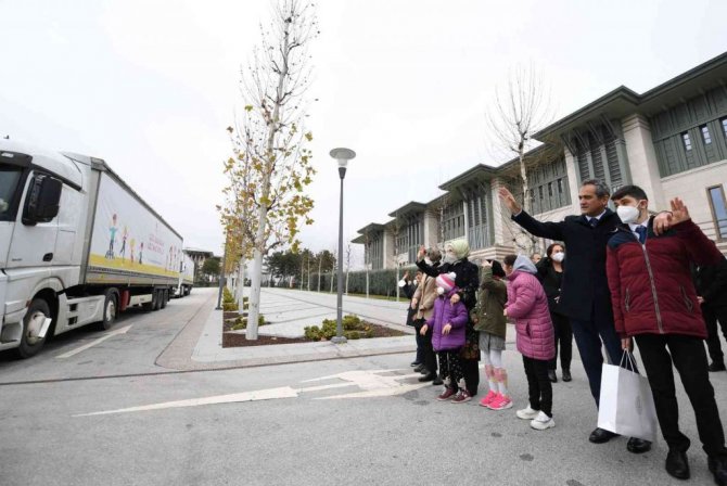 Emine Erdoğan ve Bakan Özer, "7 tır ile 7 bölgeye özel eğitim materyalleri" taşıyan tırları uğurladı