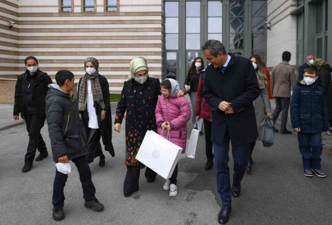 Cumhurbaşkanı Recep Tayyip Erdoğan'ın eşi Emine Erdoğan ile Milli Eğitim Bakanı Mahmut Özer'in katılımıyla Cumhurbaşkanlığı Külliyesi'nde düzenlenen törenle, "7 tır ile 7 Bölgeye Özel Eğitim Materyalleri" programı kapsamında özel çocuklara materyaller gönderildi.