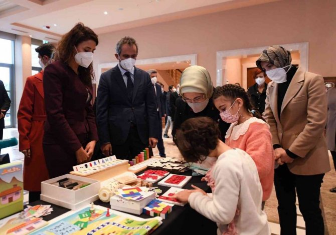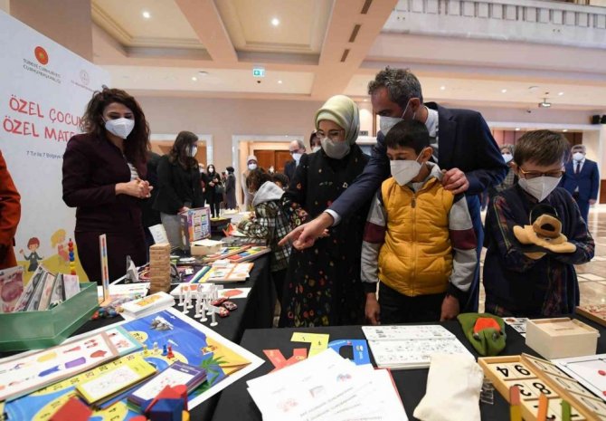 Özel eğitim materyalleri hakkında bilgiler veren Milli Eğitim Bakanı Özer, "Özel çocuklara özel materyaller projesi, Emine Erdoğan Hanımefendi'nin himayelerinde yürüyor. Şuana kadar 400 bin özel eğitim materyali okullarımıza gitti. Bugün Hanımefendi'nin teşrifleriyle birlikte 117 bin tane daha özel eğitim materyalini 7 bölgeye göndereceğiz. 2022 yılı içerisinde de 483 bin yeni özel eğitim materyali yaparak, 2022 yılı sonu itibariyle 1 milyon materyali tüm öğrencilerimize ulaştırmış olacağız. tüm özel öğrencilerimizin materyal ile ilgili hiç bir ihtiyacı kalmayacak" ifadelerini kullandı.