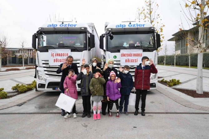 Öte yandan tırları uğurlama törenine Altınordu Layka Akbilek İlkokulu'ndan Yağız Yekta Demirtaş, Ahmet Kabaklı Ortaokulu'ndan Emircan Kaya, Mev Gökkuşağı İlkokulu'ndan Görkem Ödemiş, Mev Gökkuşağı İlkokulu'ndan Berra Betül Zan, İller Bankası Özel Eğitim Uygulama Okulu'ndan Ali Murat Kaya, İller Bankası Özel Eğitim Uygulama Okulu'ndan Sıla Budak da katıldı.