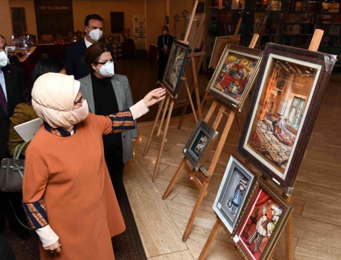 Emine Erdoğan sergiyi gezdi, huzurevi sakinleriyle sohbet etti
