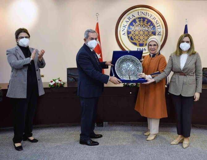 Emine Erdoğan, program öncesinde Bakan Yanık ve Rektör Ünüvar ile YAŞAM tarafından düzenlenen huzurevi sakinlerinin el ürünü eserlerinin yer aldığı sergiyi gezdi. Burada yaşlılarla bir süre sohbet eden Emine Erdoğan, hatıra fotoğrafı da çektirdi. Erdoğan, daha sonra Ankara Üniversitesi Şeref Defteri'ni imzaladı.