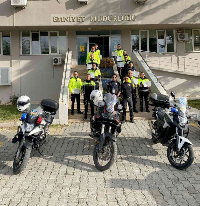 Muğla Emniyet Müdürlüğü 6'ncı dönem motosikletli trafik timleri sürüş teknikleri eğitimini tamamlayan 12 personel sertifikalarını aldı.