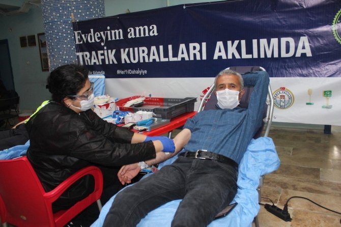 Emniyetten kan stokları azalan Kızılay’a kan bağışı