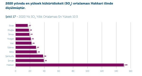 2020 yılında, en yüksek PM10 değerinin Ankara Siteler'de 490 µg/m3 ve Sinop Boyabat istasyonunda 305 µg/m3 olarak ölçüldüğü bilgisi de verildi. Verilerin, hava kirliliğinin bu bölgelerde akut sağlık sorunları açısından çok ciddi bir risk oluşturduğunu gösterdiği ifade edildi. Sinop 2020 yılında en yüksek kükürtdioksit (SO2) ortalaması görülen 10 il arasında da sıralandı.