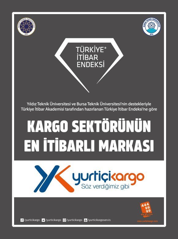 Türkiye İtibar Akademisi tarafından Yıldız Teknik Üniversitesi ve Bursa Teknik Üniversitesi öğretim üyelerinin akademik denetiminde bu yıl onuncusu gerçekleştirilen Türkiye İtibar Endeksi Araştırması'nın sonuçları belli oldu. Türkiye İstatistik Kurumu tarafından "Türkiye Örneklemi" kabul edilen 26 bölge ve 72 ilde 12 bin kişi ile görüşülerek tamamlanan araştırmada; yaklaşık 50 farklı sektördeki markaların itibar derecelendirmesi yapıldı. Buna göre kargo sektörünün en itibarlı markası geçen yıl olduğu gibi Yurtiçi Kargo oldu.