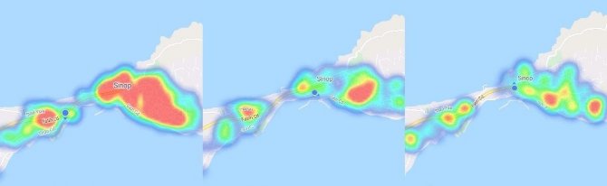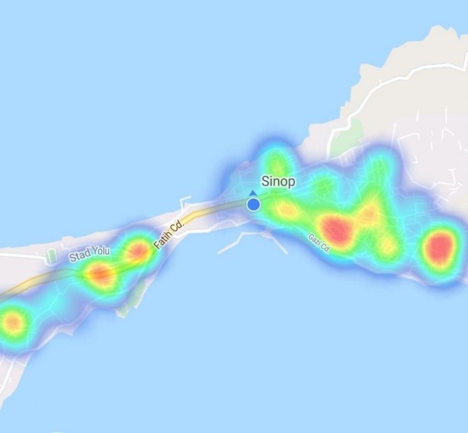 Sinop'da HES uygulamasından 27 Kasım, 29 Aralık ve 11 Ocak tarihlerinde zaman aralıklarıyla alınan görüntüler korona virüsünde vaka sayılarındaki düşüşü gözler önüne serdi. 47 gün önce "yüksek risk'i temsil eden kırmızı rengin yoğunluğu dikkati çekerken, şu anda şehre "düşük risk" anlamındaki yeşil ve mavi renkler hakim oldu.