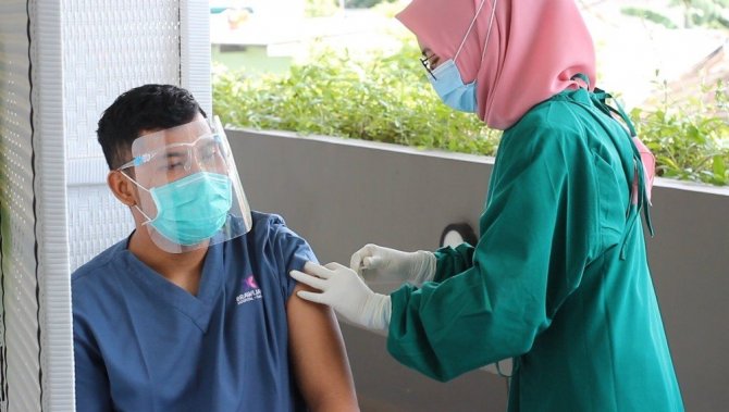Dünya genelinde birçok ülkede yeni tip korona virüse (Covid-19) karşı aşı uygulamaları sürerken, Endonezya'da aşılama kampanyası 14 Ocak'ta başladı. Yeni tip korona virüse (Covid-19) karşı toplu aşılama kampanyasının devam ettiği Endonezya'da Sağlık Bakanlığı, ülkede toplam aşı yapılan kişi sayısının 5 milyon 500 bine ulaştığını duyurdu. Aşılama kampanyası alınan sıkı korona virüs tedbirleri altında sürdürülüyor. Aşılamalar, kişilerin ateş ölçtükten sonra hijyen kurallarına uygun şekilde yapılıyor.