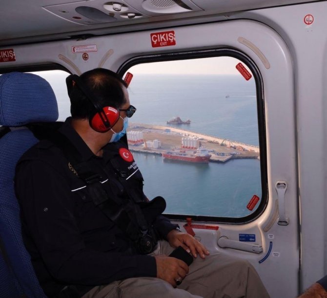 Enerji ve Tabii Kaynaklar Bakanı Dönmez: "Fatih Sondaj Gemimize lojistik destek sağlayan Filyos Limanı’ndaki kıyı lojistiği genişleme çalışmalarını ve Karadeniz gazının şebekeye bağlanacağı noktayı havadan inceledik. Hazırlıklarımız sürüyor. 2023 yılında Karadeniz gazını vatandaşımızla buluşturacağız."