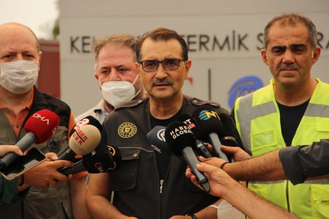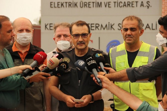 Dün gece alevler arasında kalan Kemerköy Termik Santrali'ne gelerek incelemelerde bulunan Enerji ve Tabii Kaynaklar Bakanı Fatih Dönmez, bölgede yaptığı incelemelerin ardından basın mensuplarına açıklamalarda bulundu.
