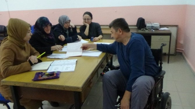 Aslanapa Halk Eğitim Merkezi Müdür yardımcısı Betül Us ve görev yapan öğretmenler, Aziz Kılıçarslan’la çalışmanın bir ayrıcalık olduğunu ve hiç bir zaman ’Engelinin hiç bir şeye engel olmadığını’ gördük dediler. (YD-EFE)