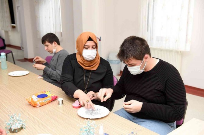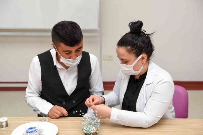 Oğlu Enes ile birlikte boncuktan çiçek yapımı kursuna gelen anne Emine Taşyürek, oğlunun daha önce de mozaik kursuna geldiğini ve bu kurslar sayesinde çok ilerleme kaydettiğini söyledi. Taşyürek duygularını şu sözlerle aktardı: