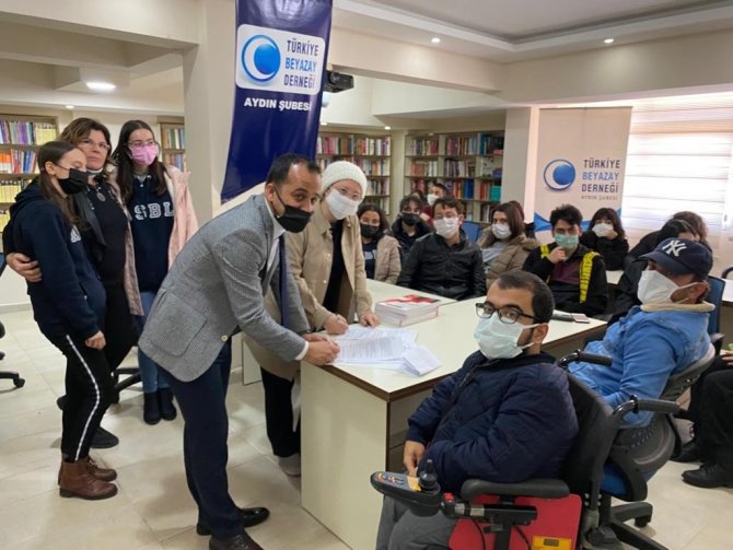Beyazay Derneği Aydın Şubesi, Aydın Valiliği ile birlikte "Engelleri Birlikte Aşalım" projesi kapsamında Sosyal Bilimler Lisesi ile imzalanan protokol çerçevesine gönüllü öğrencilerle birlikte e-KPSS kursu açacak.