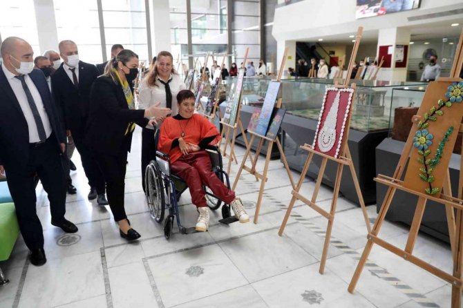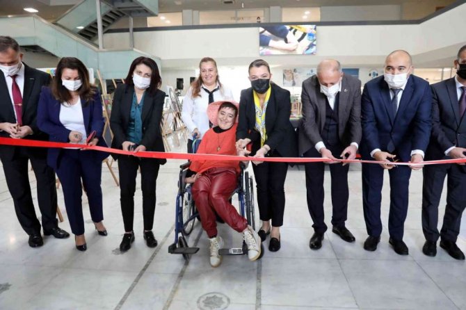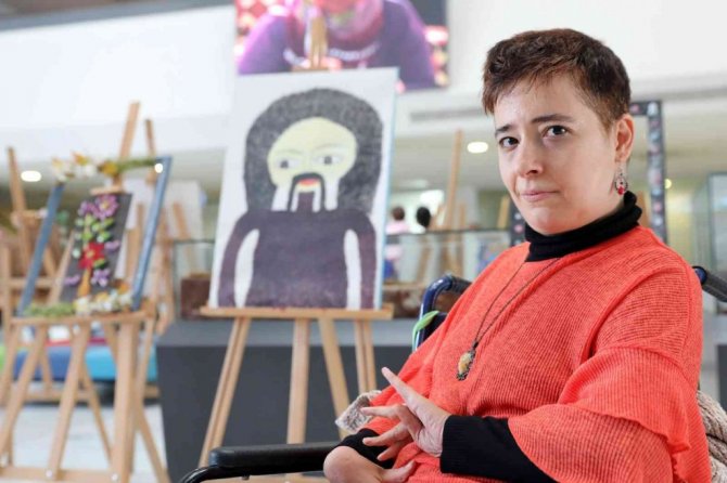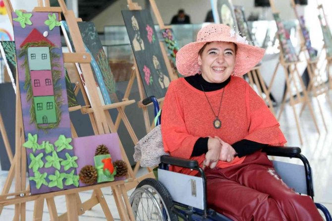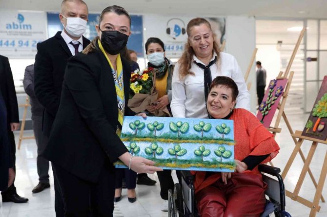 Antalya Büyükşehir Belediyesi, 3 Aralık Dünya Engelliler Günü'nde engelli sanatçı Ayşe Aydın'ın ayaklarıyla yaptığı resimlerin sergisini açtı.