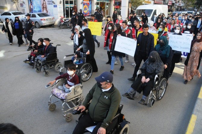 Şırnak'ın Cizre ilçesinde, 3 Aralık Dünya Engelliler Günü dolayısıyla farkındalık yürüyüşü düzenlendi.