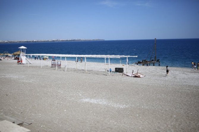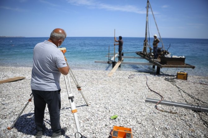 Antalya Büyükşehir Belediyesi, kışın fırtınadan zarar gören Konyaaltı Sahili'ndeki Engelsiz Plaj'da sezon hazırlıklarına başladı.